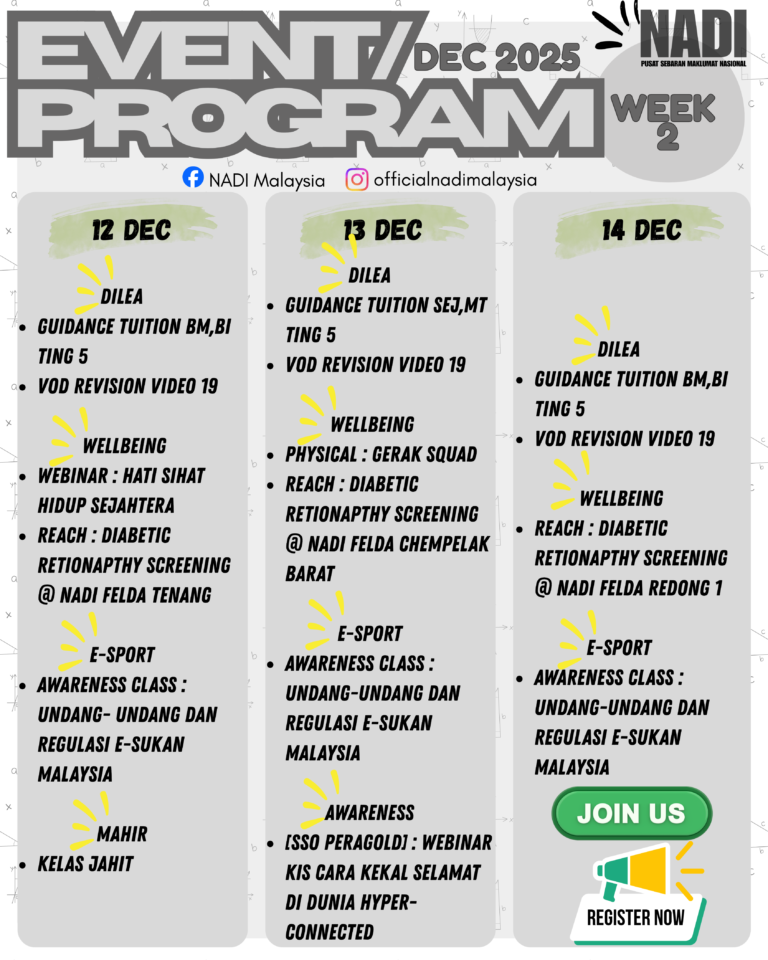 JEMPUTAN MENYERTAI WEBINAR KESELAMATAN SIBER Assalamualaikum dan salam sejahtera. Anda dijemput untuk menyertai webinar NADI x Cybersecurity Lifelong Learning yang akan membincangkan topik: 🔐 CARA GUNAKAN WIFI AWAM DENGAN SELAMAT Dalam sesi ini, peserta akan didedahkan tentang risiko menggunakan WiFi […]
