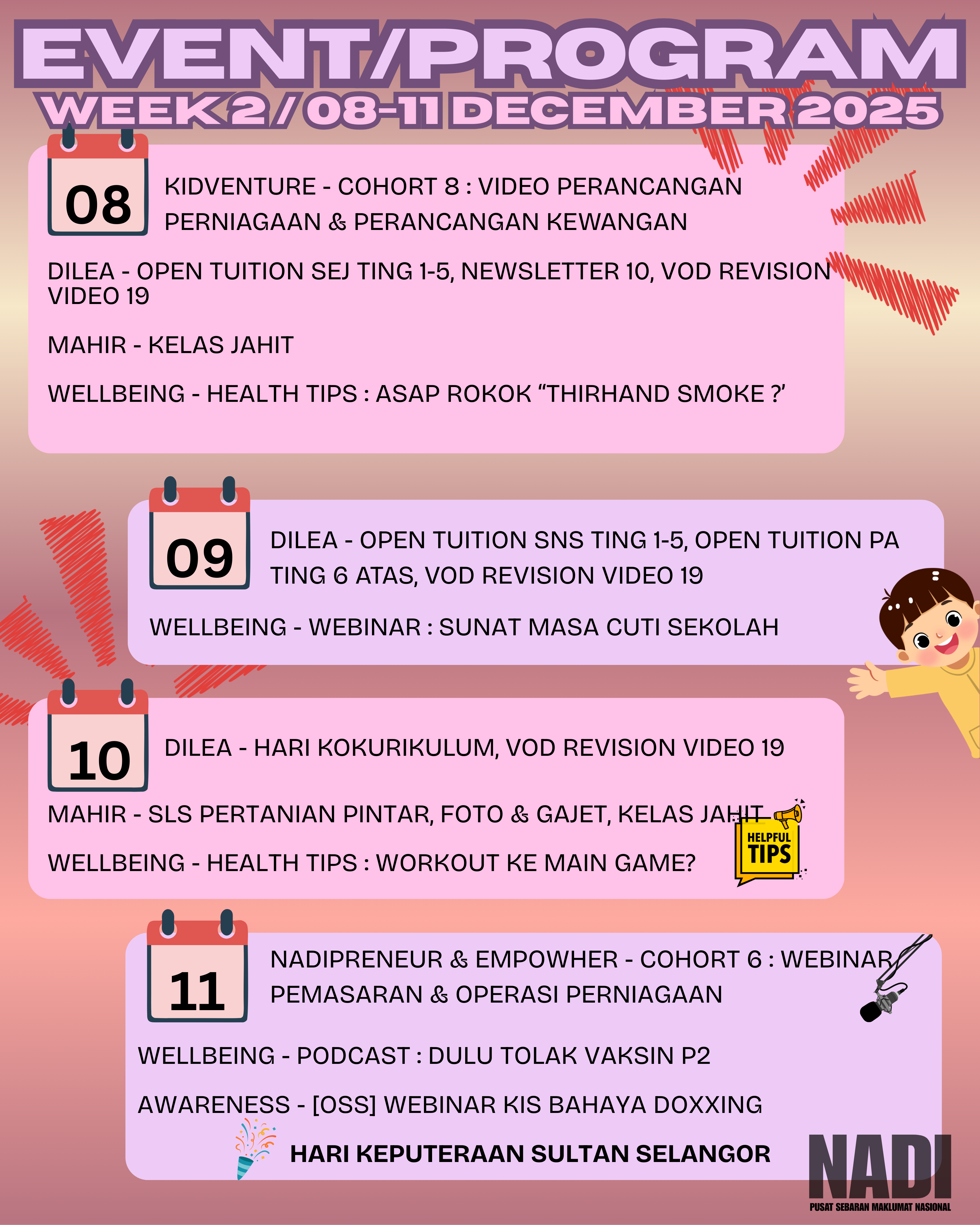 Berikut adalah takwim @ aktiviti yang dijalankan sepanjang bulan disember 2025.