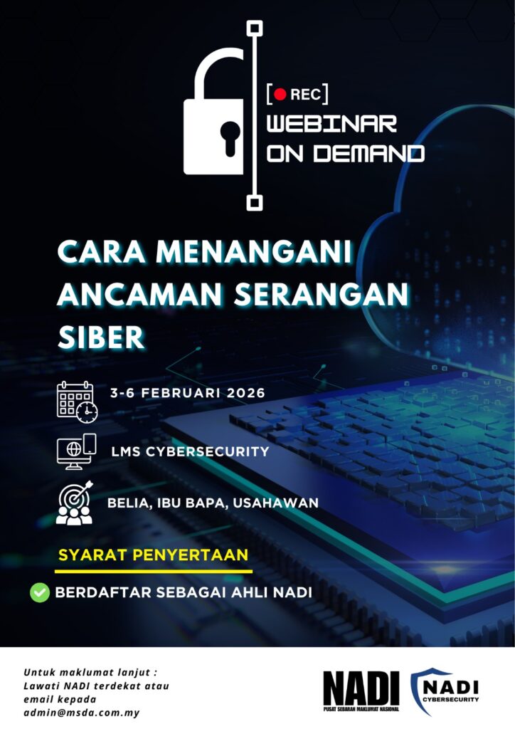 Dimaklumkan bahawa rakaman webinar” CARA MENANGANI ANCAMAN SERANGAN SIBER” yang berlangsung pada 29 Januari 2026 kini telah dibuka untuk tontonan semula melalui LMS Cybersecurity.